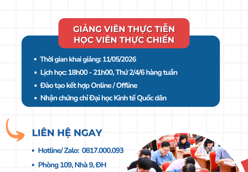 Đăng ký ngay hôm nay để không bỏ lỡ cơ hội nâng cao chuyên môn và nhận chứng chỉ từ Đại học Kinh tế Quốc dân!